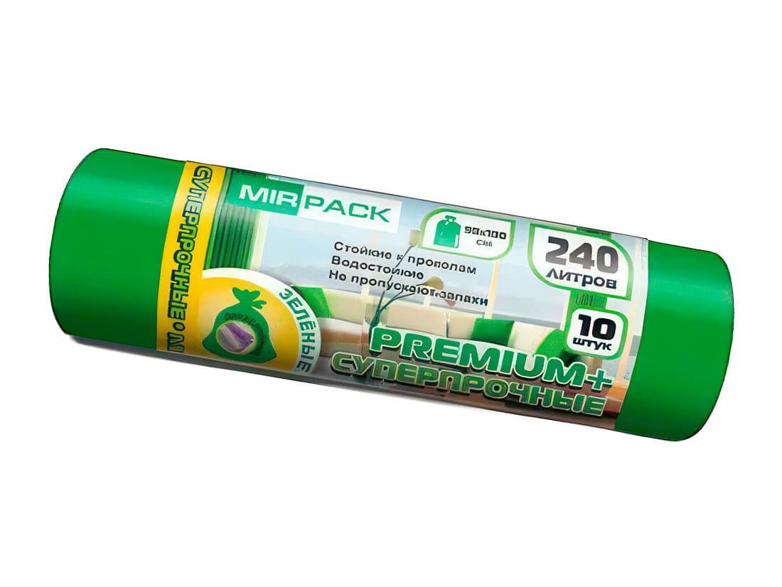 Мешки для мусора 240 л, ароматизированные, зеленые, в рулоне 10 шт., ПВД 45 мкм, 1300х930 мм, PREMIUM+, 240108301