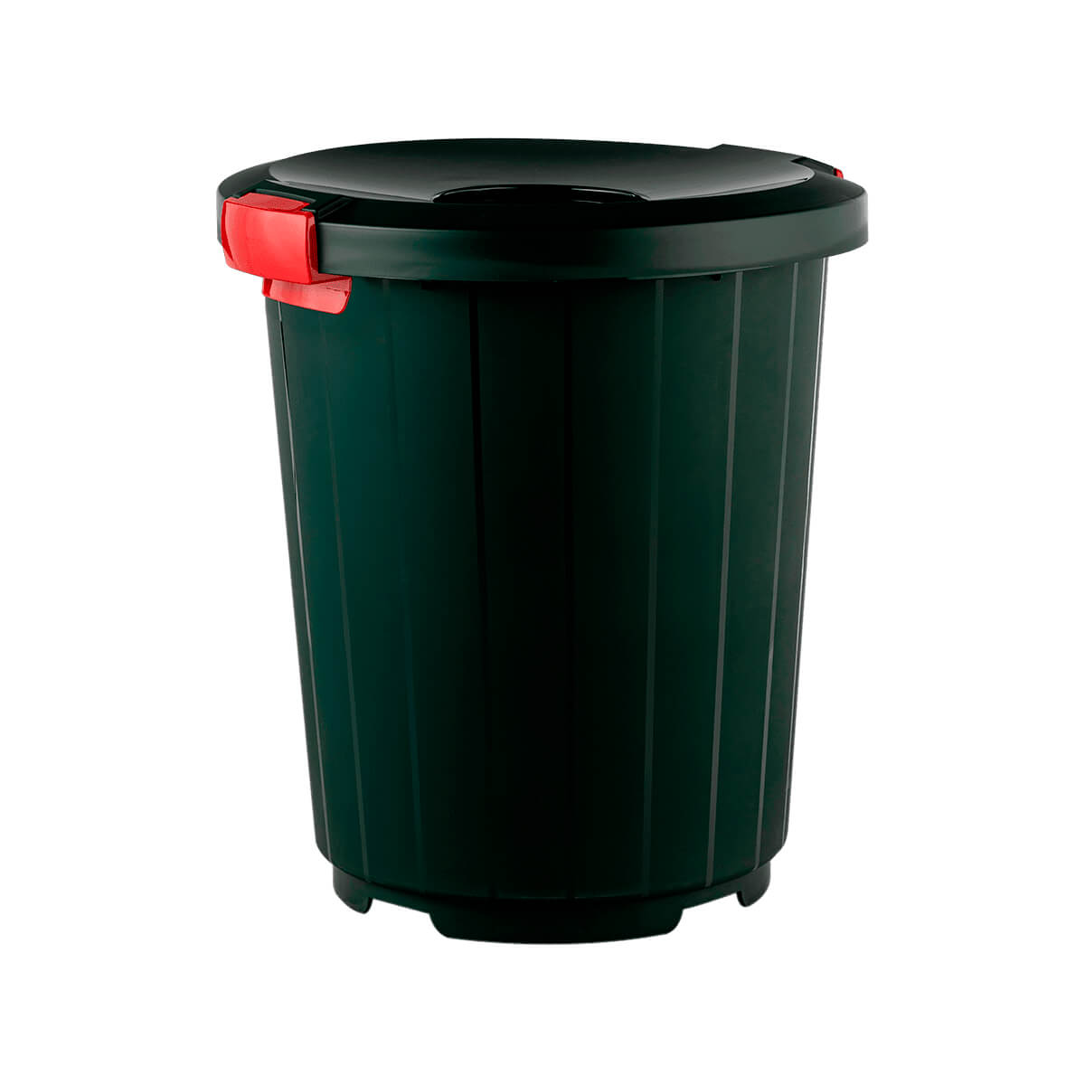 Конструкция бака предотвращает распространение запахов и эффективно сдерживает мусор даже в случае его опрокидывания. Темно-зеленый пластик устойчив к влаге, солнечным лучам и температурным изменениям, что делает его идеальным решением для использования как внутри помещений, так и на открытом воздухе.