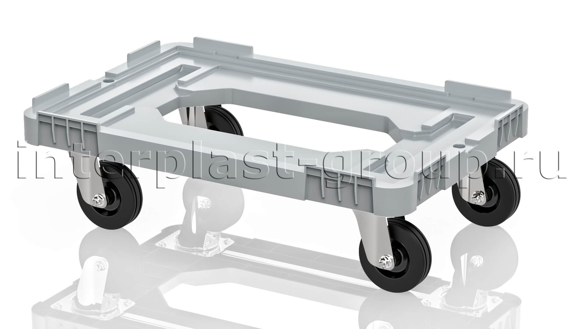 Тележка пластиковая с отверстием без тормозов усиленная серая
