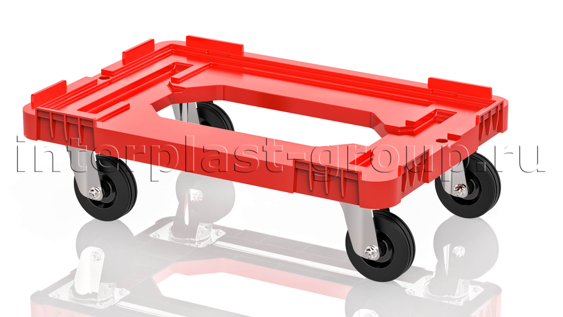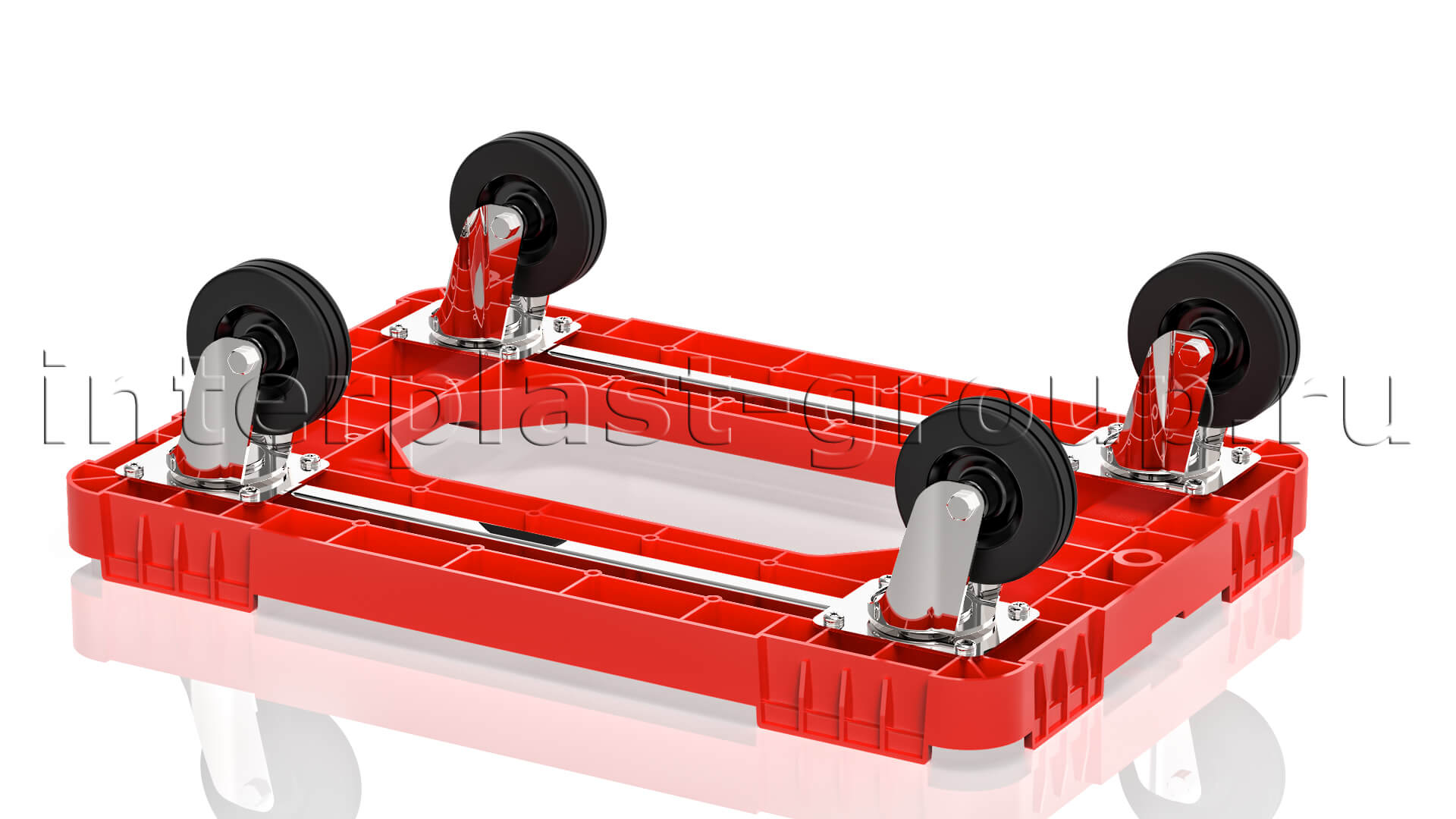 Тележка пластиковая с отверстием без тормозов усиленная красная