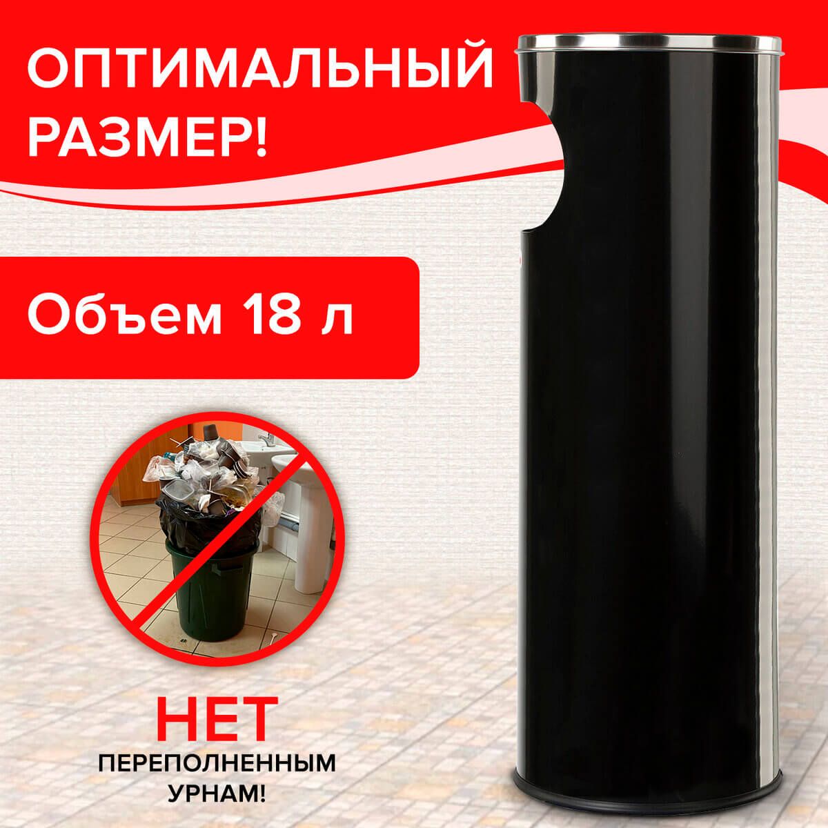 Урна с пепельницей 18 литров, нержавеющая сталь, черная, LAIMA PROFESSIONAL в Петрозаводске